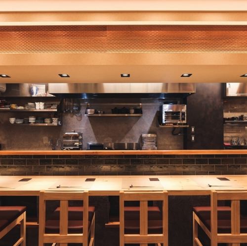 明るい照明のゆっくり過ごせるテーブル席やカウンター席をご用意。お料理の美しさをさらに引き立てます◎